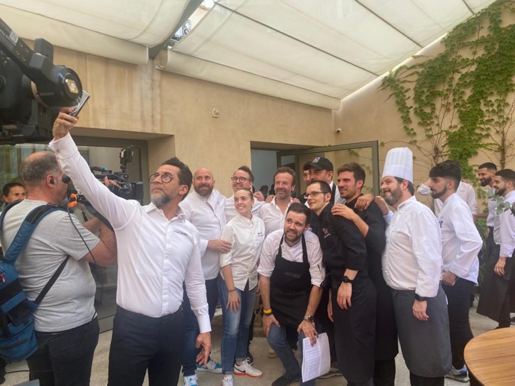 Una de ellas fue con motivo de la entrega de premios, de la guía gastronómica OAD, que premia los mejores restaurantes europeos cada año. El evento fue sencillamente memorable, en una cena denominada «los magníficos pescados y mariscos de España», pues en él participaron nueve de los mejores chefs de este paí. Eneko Atxa de Azurmendi, Paco Morales de Noor, Hugo Muñoz de Hugo Chan, Massimiliano Delle Vedove de Smoked Room, Nacho Manzano de casa Marcial, Kike Acosta, Diego Murciego de desde 1911, Rafa Zafra de Estimar y Alberto Aguado de O,Pazo. La cena consistió en un menú de diez pases con maridaje, con algunos de sus platos más singulares.